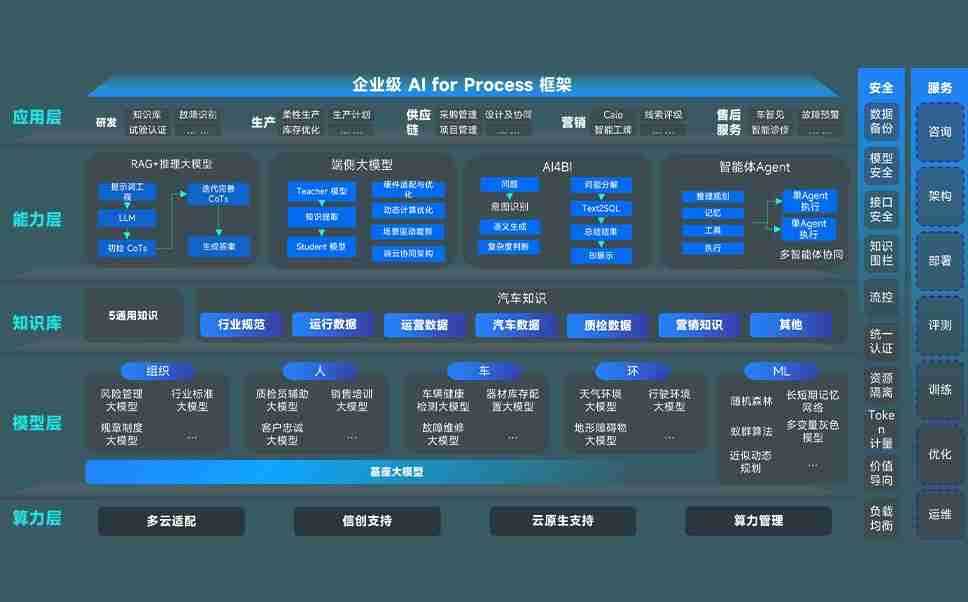 z6尊龙问学智车解决方案是一套基于AI技术的汽车行业智能化系统,,,覆盖从底层算力到顶层AI应用的全栈方案。。。。方案由算力层、、模型层和应用层组成:算力层,,,方案支持多种一体机配置,,,,具备云端灵活部署、、、多云适配以及动态优化计算资源的能力;模型层,,,z6尊龙问学平台版提供了企业级AI应用一站式构建与管理平台,,支持基于后训练强化技术的汽车企业专属模型的训练、、、、评测和运营;应用层,,,,z6尊龙问学DeepSeek版提供包括超级员工、、智能招采、、、、智能营销、、智能客服、、、AI for BI等一系列解决方案,,,,可助力汽车行业实现数字化转型,,,让管理更智能、、、响应更敏捷。。