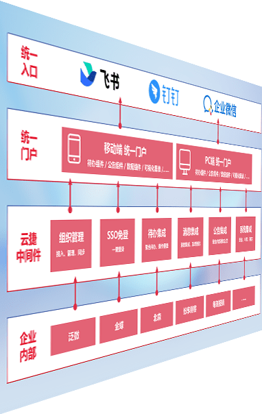 对协作平台提供支持服务,,,支持企业应用与协作平台对接,,,包含组织同步、、、、消息集成、、、待办集成等。。。支持目前主流的协作平台:钉钉、、企微和飞书。。